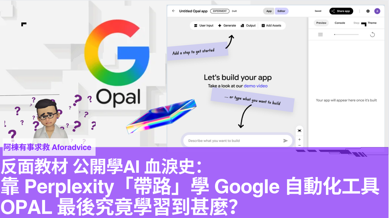 反面教材 公開學AI 血淚史: 靠 Perplexity「帶路」學 Google 自動化工具 OPAL 最後究竟學習到甚麼?